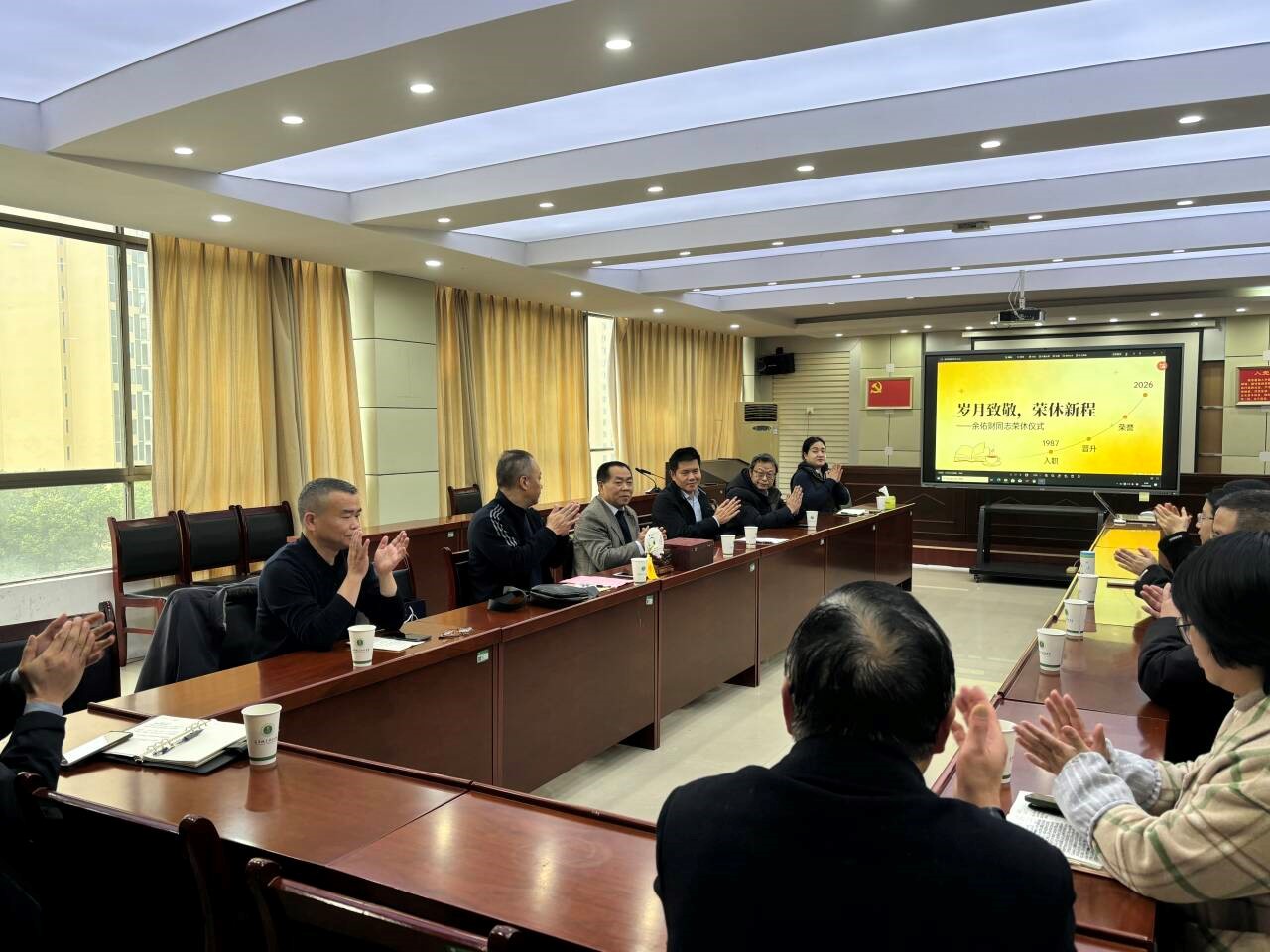 近日,校工会联合发展规划与质量管理处为余佑财同志举行荣休仪式。校工会主席吴虓、离退休工作处副处长雷强,发展规划与质量管理处及信息工程学院教师代表齐聚一堂,共同见证这一温馨时刻。
